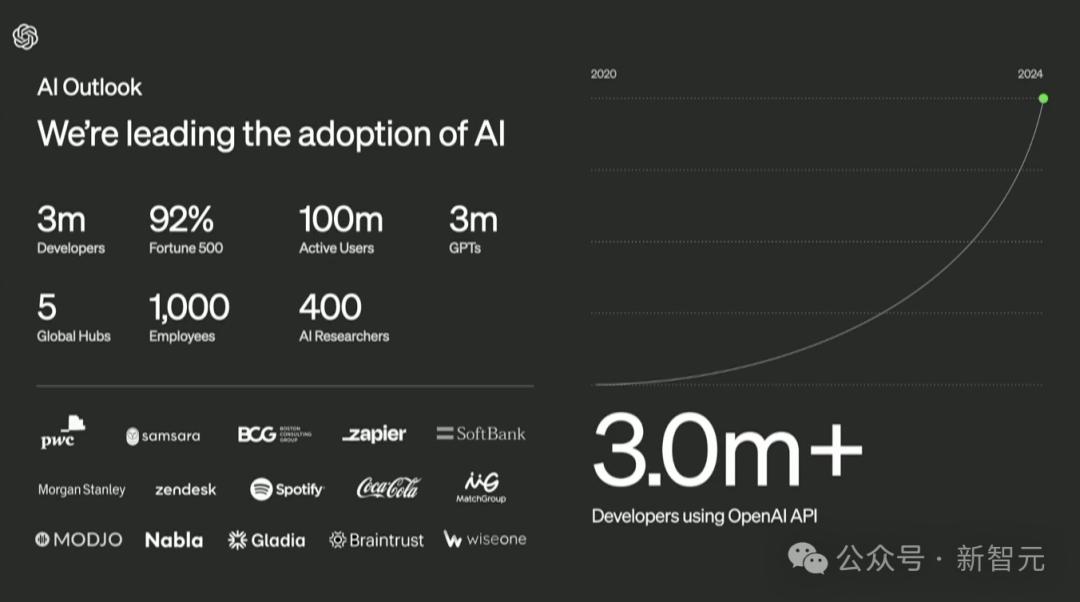 92%的财富500强让ChatGPT加入工作流,而还有1亿的活跃用户,开发者们已经打造了300万GPTs。