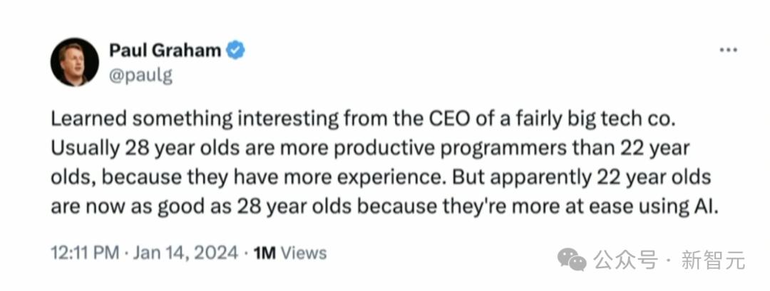 通常,28岁的程序员比22岁的程序员更具生产力,因为他们拥有更多的经验。但显然,22岁的程序员现在和28岁的程序员一样优秀,因为他们使用Al时更得心应手。