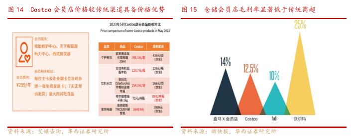 这正是会员店赢得是市场的关键诱因。华西证券研报显示,仓储会员店SKU一般在3000-4000个, 仅为传统商超SKU的30%左右,但大多为定制化产品,并且追求较高的产品品质。通过规模优势对上游供应商形成极强的议价能力,以及高效的供应链及SKU管理能力,仓储会员店得以向消费者提供低价、高品质、差异化产品。