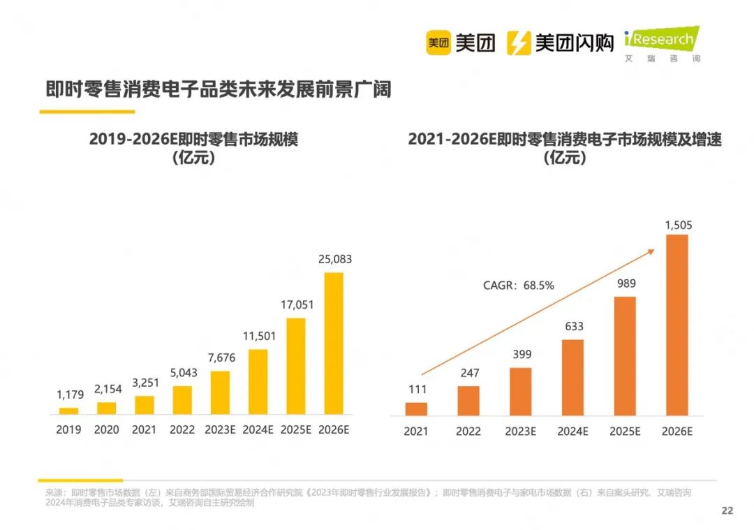 由于具备更高的效率,并且可以减少购物的时间成本,疫情消散后,消费者不光未抛弃即时零售,反而还对该业务报以更大的热情。预计2026年,中国即时零售市场规模将达25083亿元。