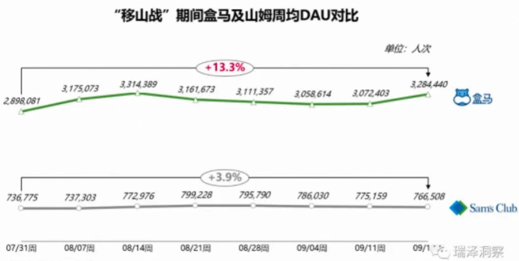 事实证明,盒马的举措确实有一定生命力。极光大数据显示,2023年7月-9月推广“移山价”活动时,盒马App周均DAU增长13.3%。2023年8月,盒马推出售价39.9元的网红产品榴莲千层蛋糕,该产品在上海地区的销量增长26倍。