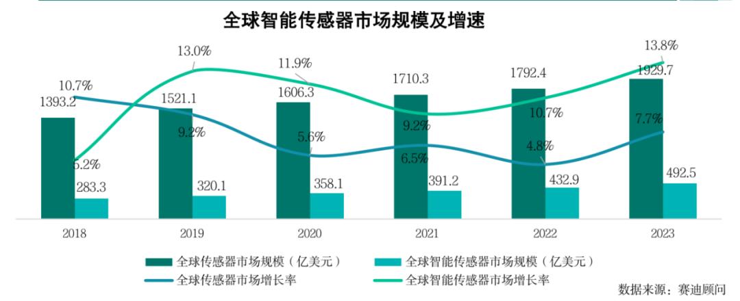 全球智能传感器市场规模及增速 数据来源:赛迪顾问