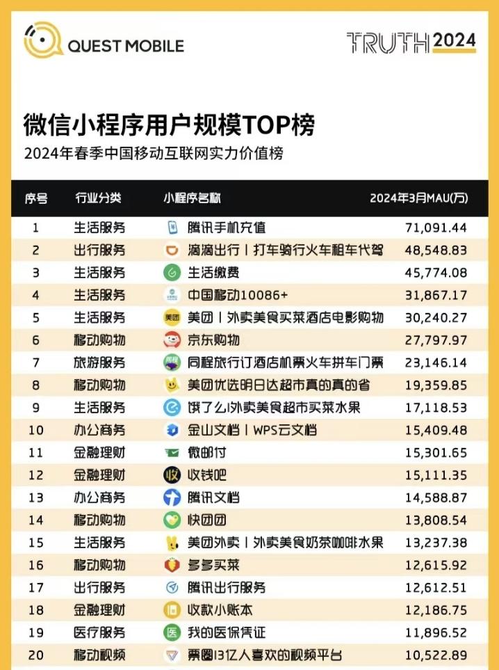 而在2024年3月微信小程序用户规模TOP榜单中,美团、饿了么、美团外卖的月活分别为3.02亿、1.71亿、1.32亿。