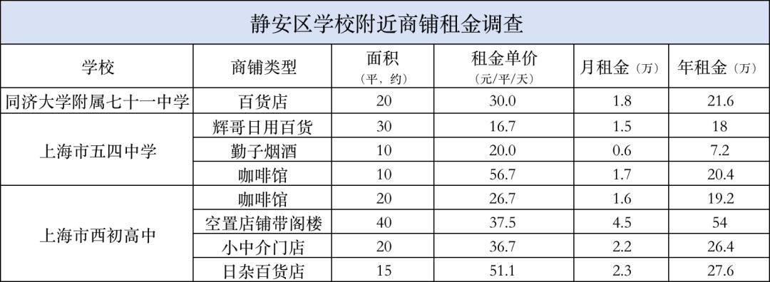 带着上海老市区上只角和学校旁边的双重buff,这里的店铺租金到底有多贵 。