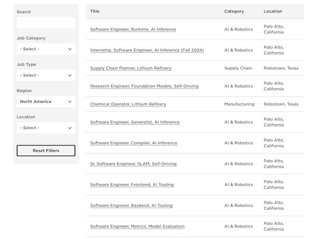 与转移业务重心相对的,目前特斯拉和AI与自动驾驶相关的招聘也有重启的迹象。