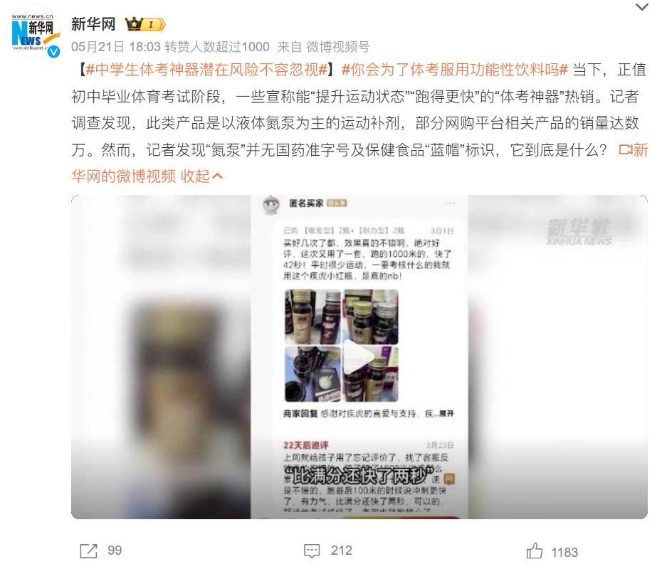 “运动状态全面提升”“一瓶就可开挂考试”“超常发挥突破自我”…… 网购平台上氮泵类产品的宣传语,精确击中了学生和家长们的需求。新华网记者调查发现,部分网购平台氮泵相关产品的销量达到数万。