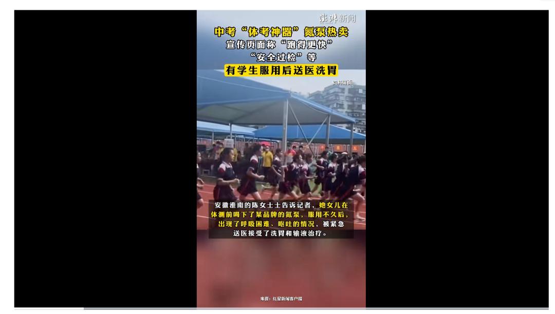 有学生服用氮泵类产品后被紧急送往医院进行治疗丨澎湃新闻视频号