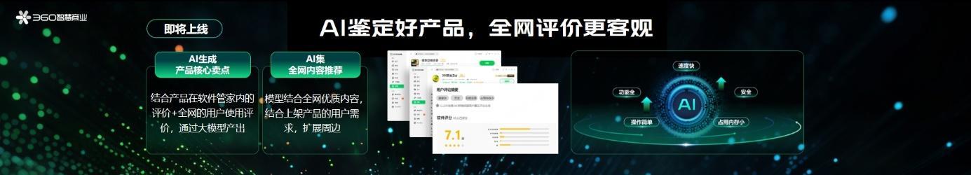 在新软管生态内,AI大模型技术应用也将进一步刷新用户体验。结合产品在软件管家内及全网用户使用评价,AIGC自动生成产品核心卖点;AI大模型则可通过搜集全网优质内容并进行深度学习,结合上架产品的用户需求,智能推荐周边优质内容。