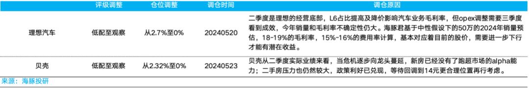 海豚君这段时间基于市场和基本面变化会集中持续调仓,上周主要调出了理想,主要是因注意到经营周期性向下,但调出后,公司经过这段时间的下跌,已经逐步进入海豚君的关注区,海豚君会关注它可能的反转机会: