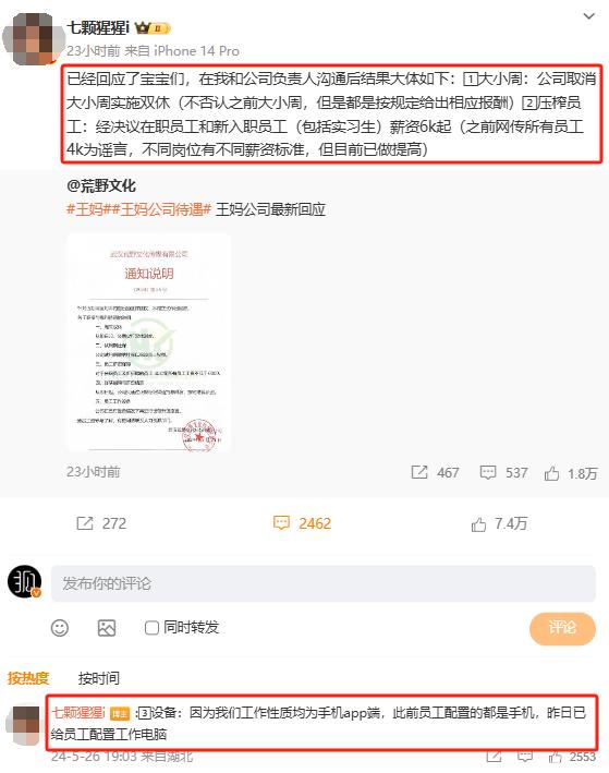 就这两天,先后有网友吐槽 “ 王妈 ” 的公司,给员工的待遇是 “ 大小周 ” 、“ 员工上班要自备电脑 ” 、“ 工资 4000 左右还要加班 ” ......