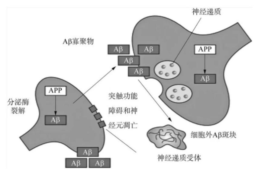 这种假说认为,在正常生理条件下,Aβ的生成与清除处于一个动态平衡的过程,但在病理情况下,Aβ生成增多或者清除减少,导致平衡被打破。Aβ过度沉积在脑内从而引起了一系列的病理过程,这些病理过程反过来又使Aβ增多,形成了级联式的放大效应。