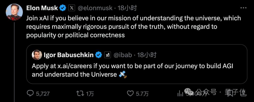 如果你相信我们理解宇宙的使命,需要最大限度地严格追求真理,而不考虑受欢迎程度或政治正确性,欢迎加入xAI。