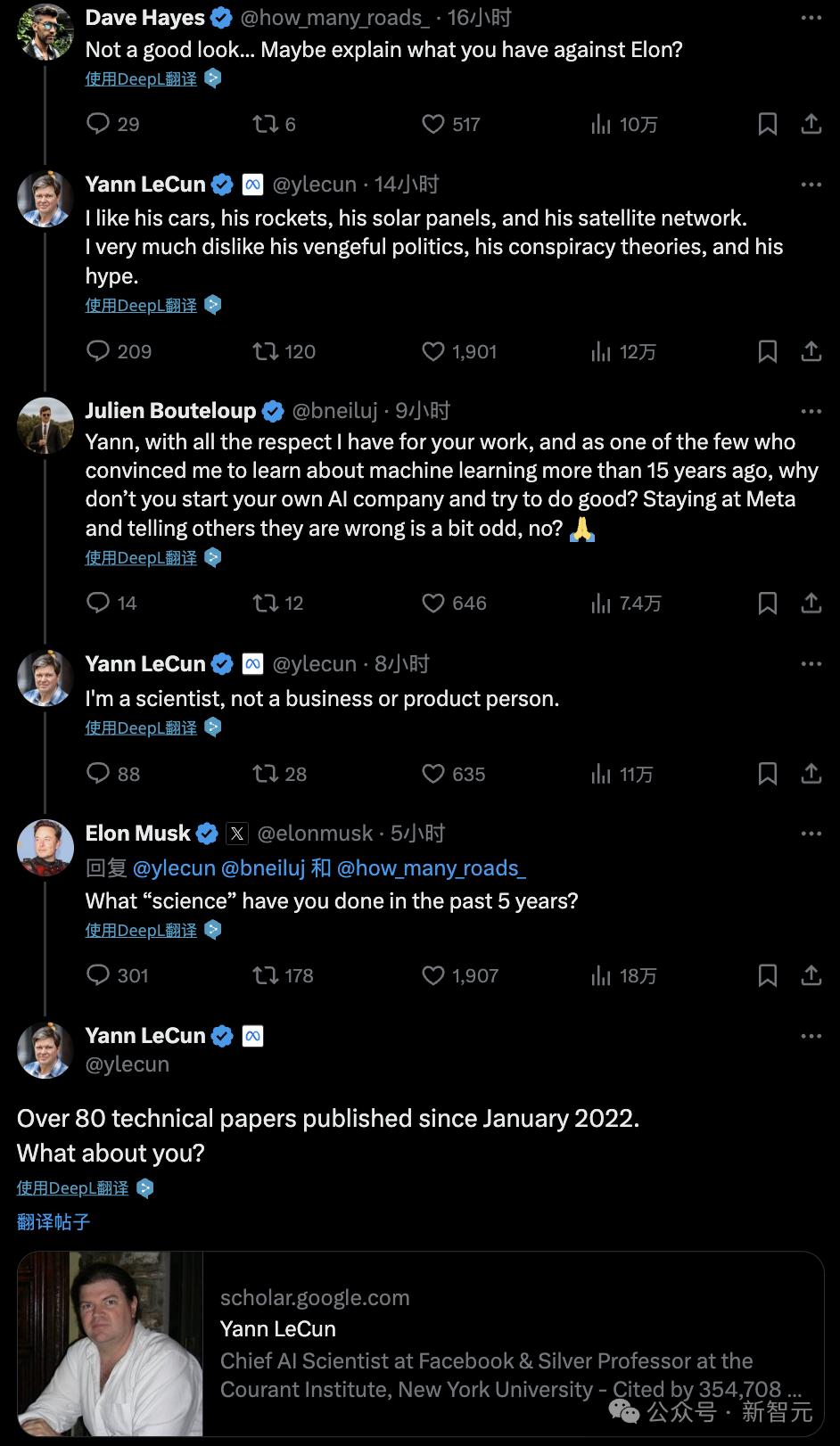 LeCun:我喜欢他的车、他的火箭、他的太阳能电池板和他的卫星网络。但我非常讨厌他的复仇政治、他的阴谋论和他的炒作。