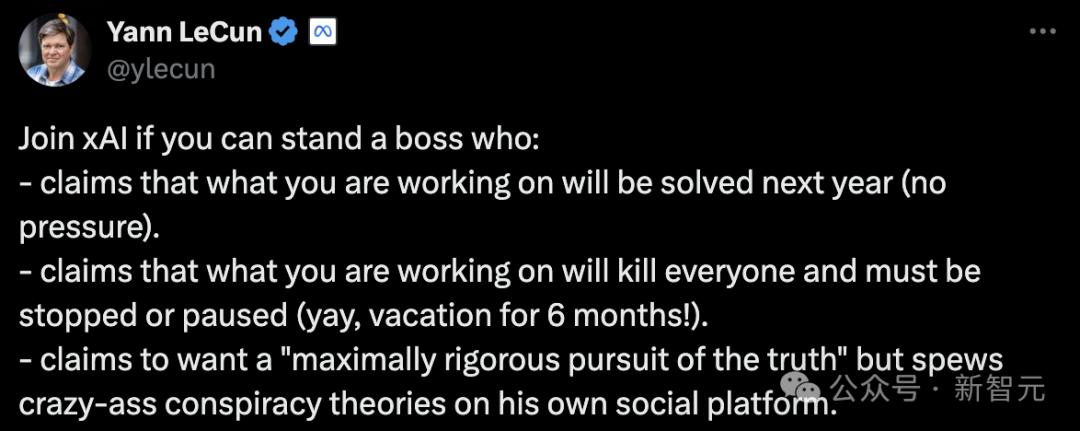 还有人表示,「你发的这帖子就是想说为马斯克工作,还不如为LeCun工作」。
