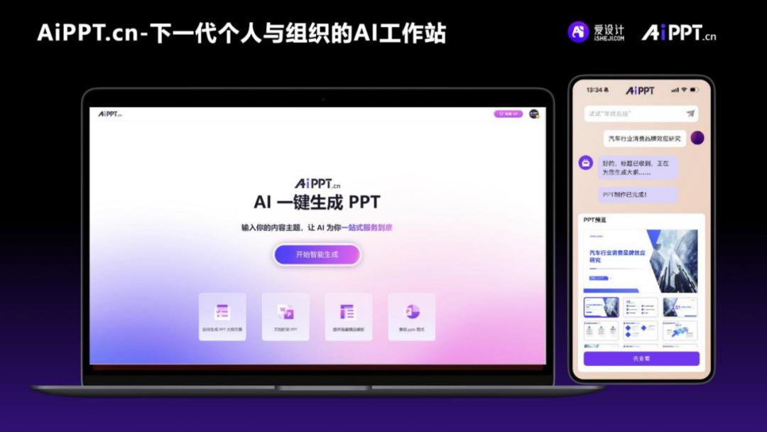 短短四年内获投四轮的同时,成立于2018年的内容创意智能解决方案厂商爱设计,通过AI化产品延展,打造出了AI生成PPT的新生力量AiPPT.cn。