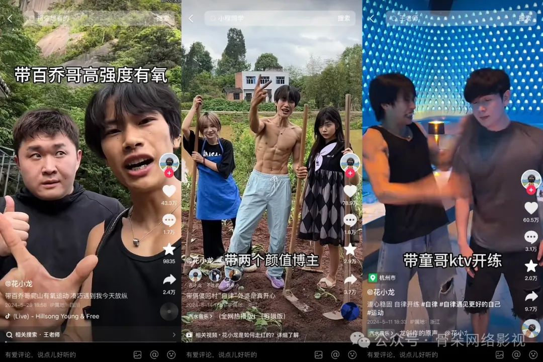 “网友非常喜欢看不同的网红在他的视频中‘被折磨’,可以说他的视频有着许多综艺节目强调的‘节目效果’。”小C认为,花小龙之所以能够打破健身账号的瓶颈,就是因为他精准地抓住了用户的需求和心理,通过独特的人设和创新的内容形式,成功吸引了大量的关注和流量。