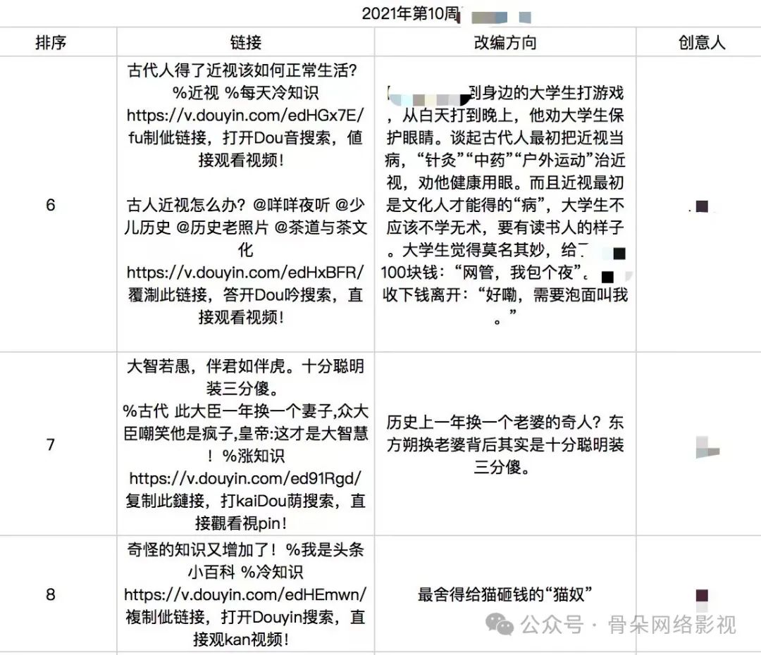 比如,对于一些影视作品中的经典的桥段或元素进行创新改编,赋予其新的形式和内涵,使其成为账号的内容。“我们公司的短视频内容策划团队每周提报选题的时候,就需要找到一些优质的内容,写一个初步的适合账号的脚本。”