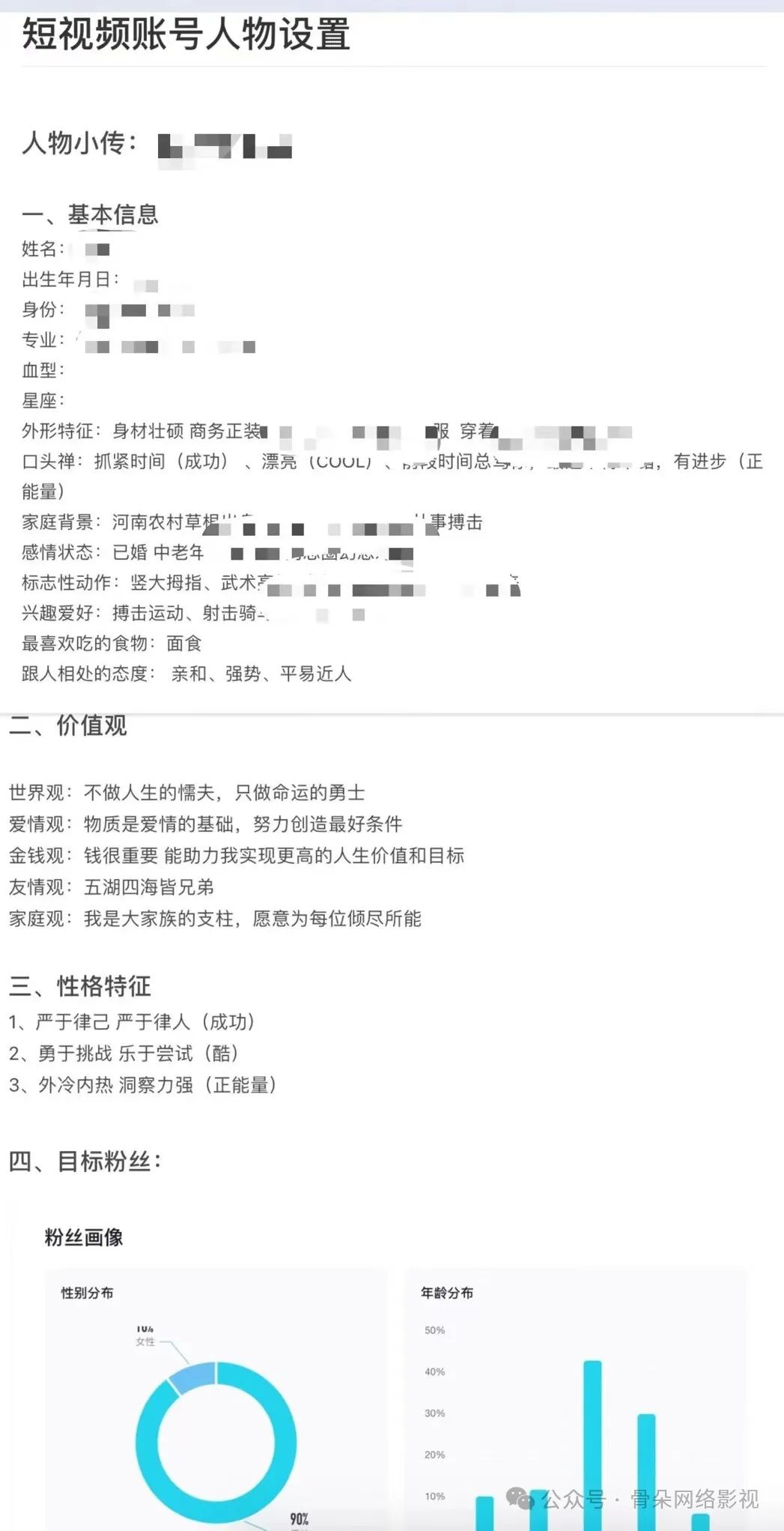 “在我们公司,大家需要先提交人物设置计划书,当我们集体探讨通过了,才会开始拍摄。”据了解,小C一般会让账号集中拍摄3-5条视频来测试人设是否吸引观众,如果发布5条后还没有起色,就需要负责团队调整人设重新制作视频,直至确保账号人设能够达到吸引人的程度。