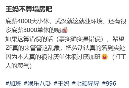 不少支持“王妈”的粉丝,甚至是普通的武汉打工人都心有不忍,为“王妈”鸣不平——“王妈不算塌房吧。”