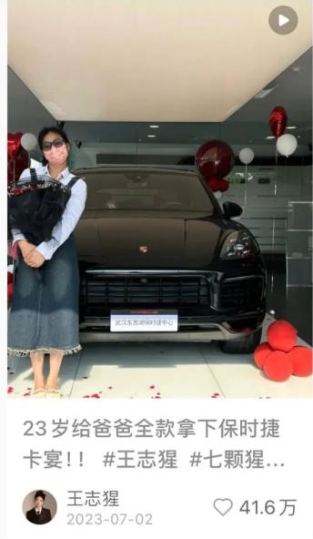 毕竟,这个全网4000万粉丝的00后,创造的前几个热搜,分别是:“00后大二学妹拍段子月入70万”“23岁给爸爸全款拿下了保时捷卡宴”……