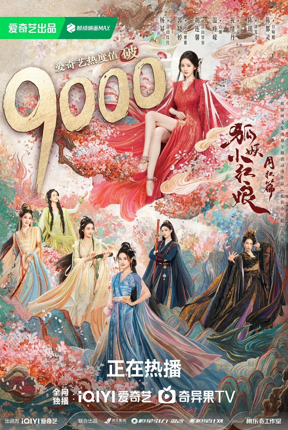 在5月23日开播当日,《月红篇》就以7225的热度值拿下爱奇艺站内2024首日最高纪录,并在播出第三天成为今年最快破9000的剧集。在灯塔、骨朵等各大数据榜单中,该剧也迅速占据TOP2,并凭借超高的全网转评赞数量在猫眼剧集榜中一度登上榜首之位。社交平台方面,该剧的演员、剧情、特效等看点引发网友广泛讨论,热搜话题不断。