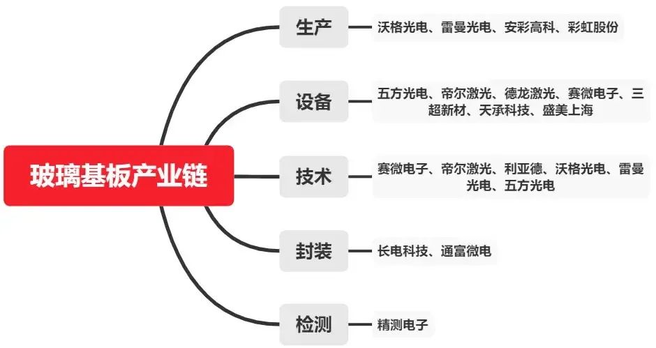 炒概念的速度永远都比技术本身来得快,此次炒概念火起来的国内相关产业链公司包括沃格光电、雷曼光电、安彩高科、彩虹股份、五方光电、帝尔激光、德龙激光、赛微电子、三超新材、天承科技、盛美上海、赛微电子、帝尔激光、利亚德、沃格光电、雷曼光电、五方光电、长电科技、通富微电、精测电子等。