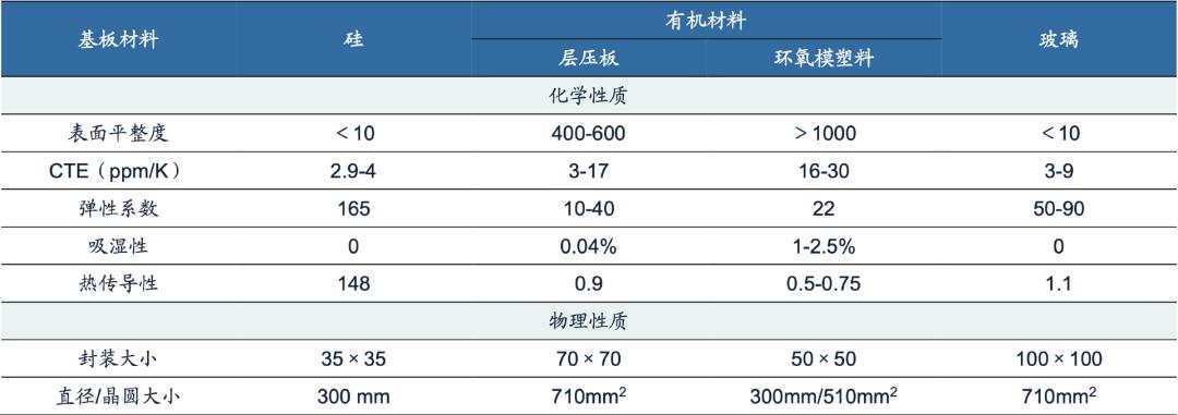 特别是有机基板粗糙表面会对超精细电路固有性能产生影响。此外,有机材料制造过程中有可能会发生收缩或翘曲,导致芯片产生缺陷。