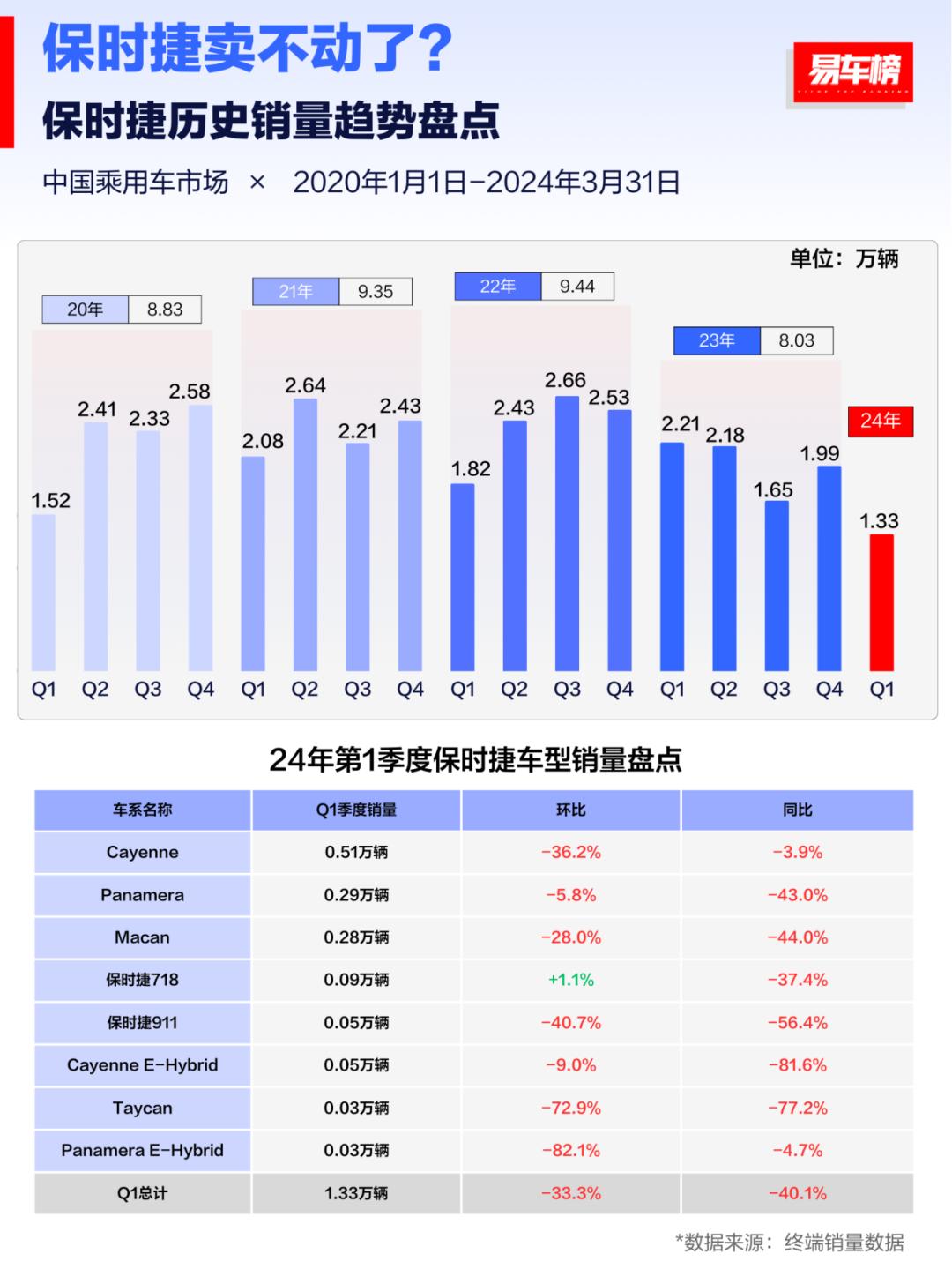 今年一季度,保时捷在中国销量进一步崩塌,仅交付了1.63万辆新车,相比去年同期下滑了23.5%,就这还是在许多经销商割肉降价好几个百分点之后才有的成绩。