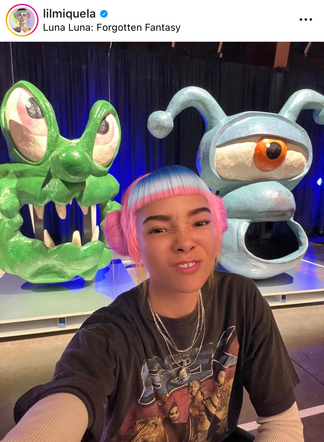 Lil 一看就是酷女孩:齐刘海,哪吒头,脸颊有着小雀斑,还总穿松松垮垮的 T 恤。