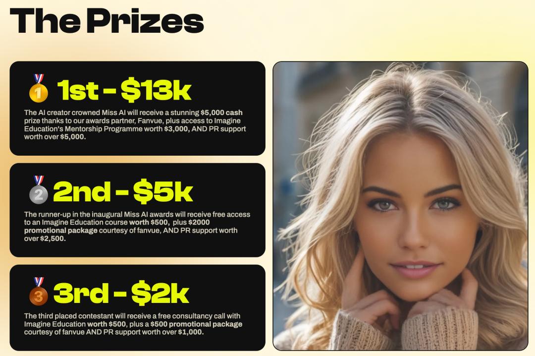 这场名为「Miss AI」的选美盛事,是由社交平台 Fanvue 与世界人工智能创造者大奖(WAICAs)联合发起。AI 佳丽们将共同瓜分 2 万美元的奖金(约合人民币 14.5 万元)。