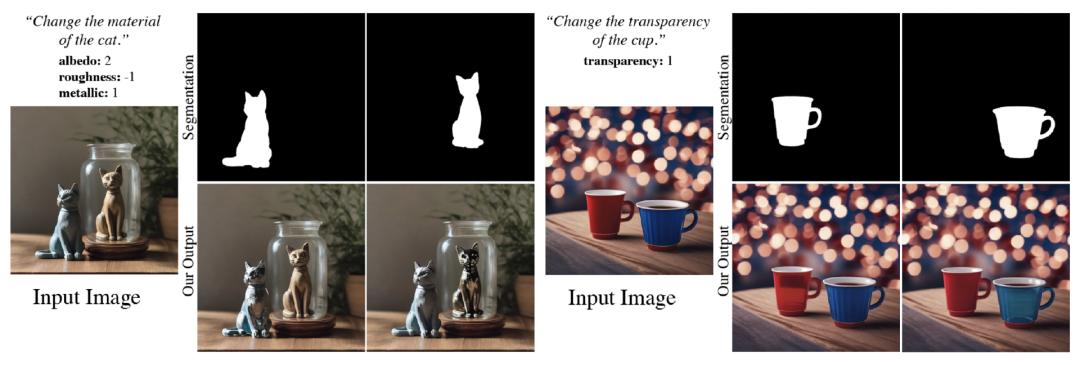 实现对图像中物体材料属性的细粒度控制是一项复杂的任务,具有广泛的商业应用前景,特别是在图像编辑、广告和图像取证等领域。