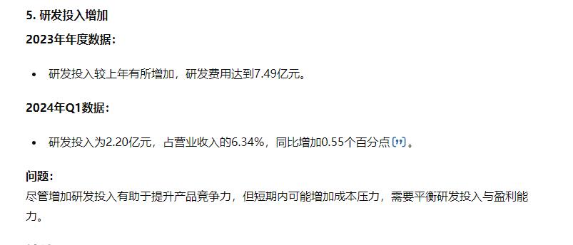 GPT-4o在回答研发投入增加时,仅指出研发投入可能会增加成本压力,但忽略极其重要的研发投产比问题。且Gemini提到的科沃斯对单一市场依赖问题,也没有指出。