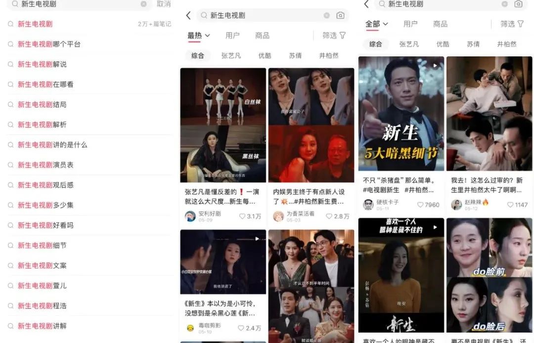 五月,小红书上的《我的阿勒泰》话题阅读量高达3.7亿次;《新生》同名话题阅读量高达6.2亿次,多条热门笔记点赞破万。