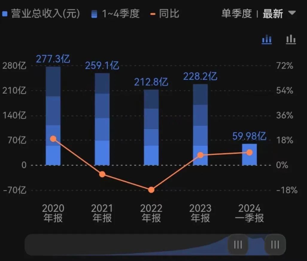 随着2024年一季度的业绩公布,两者差距只剩6亿余元,而“新星”仍以同比超70%的增速狂奔,“老大哥”却才好不容易从水下探出头来,以不到10%的增速,缓慢爬坡。