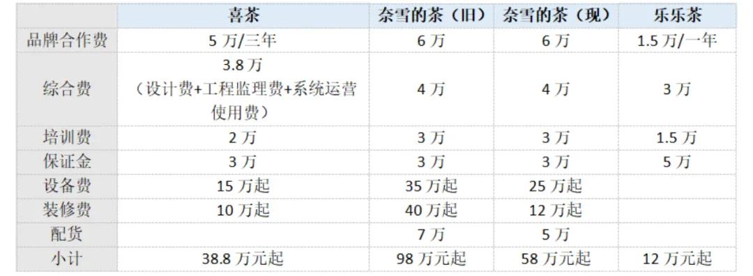 加盟高端饮品所需费用,36氪根据公开资料整理