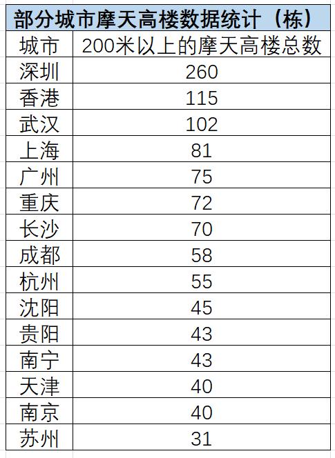 深圳更是力压一众城市,凭借多达260座200米以上的高楼,成为国内拥有高楼最多的城市 。