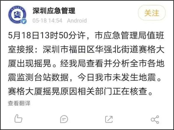 2021年5月,深圳总高356米、71层的赛格广场大楼一度出现晃动 。