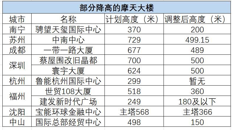 有些高度一降再降,从当地第一高楼沦为普通高楼。