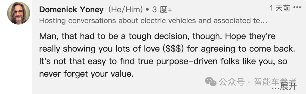 但更多的是称赞他不忘本心,重回特斯拉也是十分有勇气的行为,希望公司能重新发现他的价值: