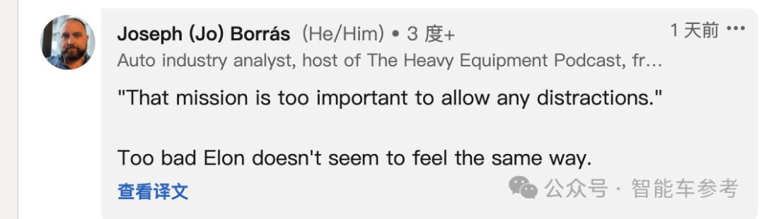翻译一下,重新回到特斯拉,无关利益,无关情绪,甚至与马斯克也没太大关系,驱动因素只有一个,那就是推动人类能源转型这个宏大的使命。