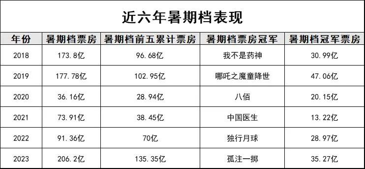 但客观来说,想重现去年暑期档的盛况并不容易。纵览近六年暑期档,虽不乏单片几十亿的头部爆款,然而像去年一个档期就能够诞生五部超大量级项目,拿下135亿+档期票房的状况,仍属史无前例。