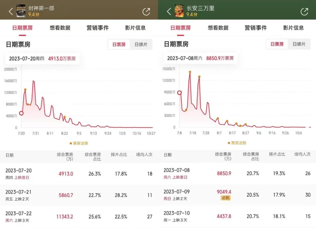 另外还有《封神第一部》《长安三万里》等项目,虽然最终票房成绩喜人,无一例外都是热度低开高走,在映后才凭借过硬品质及话题衍生打开了破圈逆袭之路。