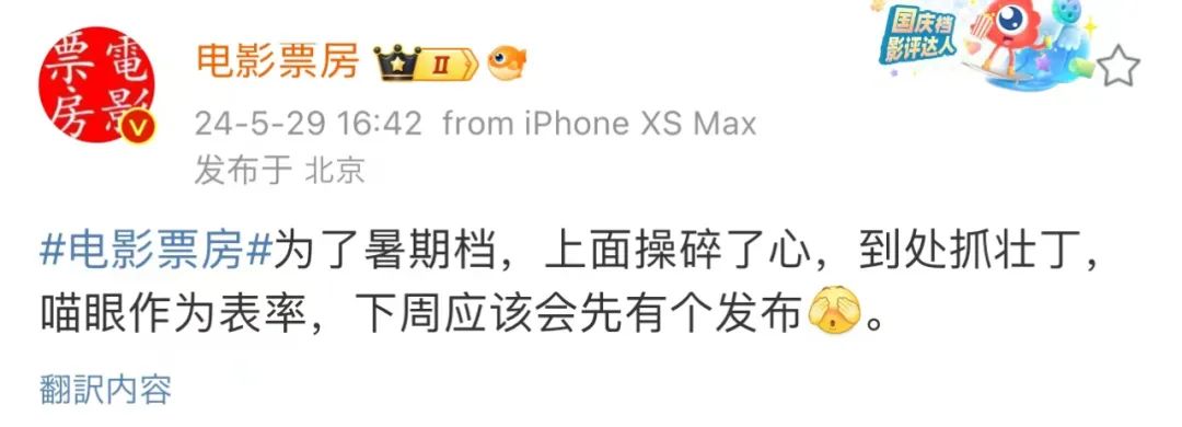 电影行业大V电影票房日前在微博透露,目前上级部门已经在加紧推进影片定档,并有望在近日官宣定档。