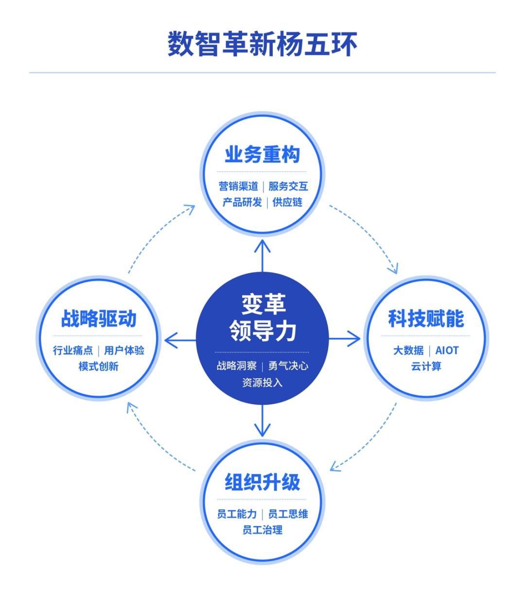 杨国安:“杨五环1.0”即战略驱动、业务重构、科技赋能、组织升级、变革领导力,“杨五环2.0”成了数实科技、产业重构、战略布局、组织升级、变革领导力五大环节。