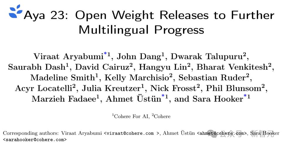 多语言大模型新SOTA,Cohere最新开源Aya-23:支持23种语言,8B/35B可选