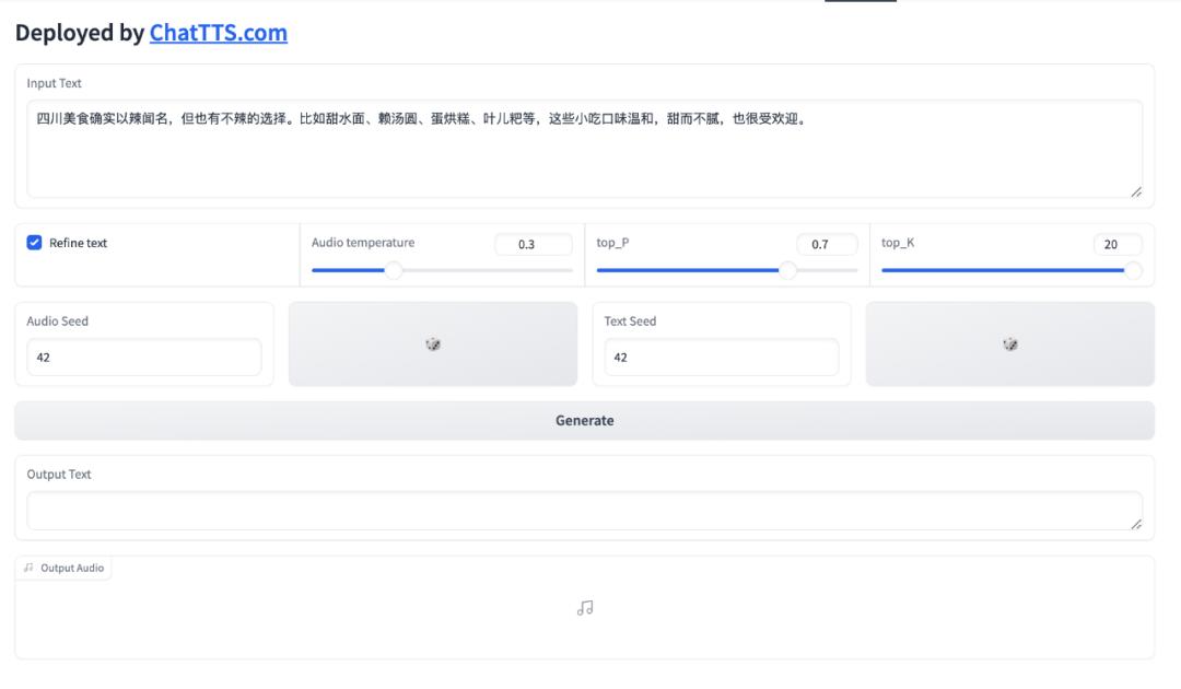 ChatTTS 主要有两种核心功能,第一种是文字转语音,第二种是将与大语言模型实时语音对话。在这些功能之外,可以在「Audio Seed」处调节数字指定说话人的音色,或者摇骰子随机生成一种。但是有不少测试者表示,每次采用一样的参数,生成的音色也不一定固定。