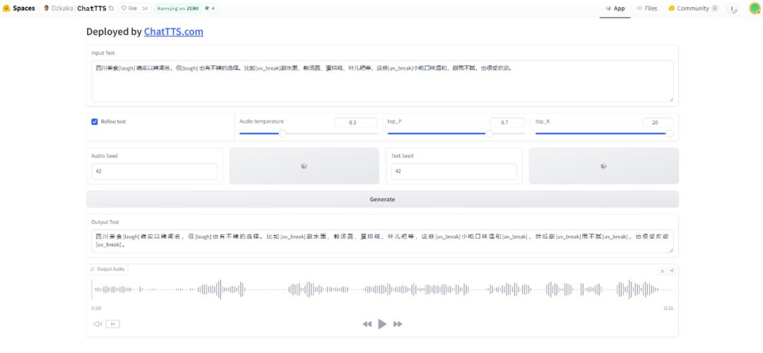 在线体验地址:https://huggingface.co/spaces/Dzkaka/ChatTTS