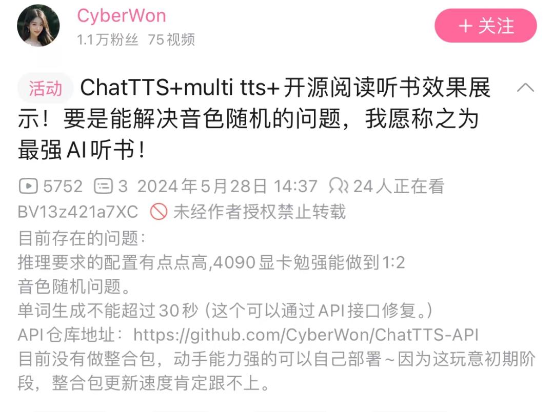 爆火ChatTTS突破开源语音天花板,3天斩获9k的Star量