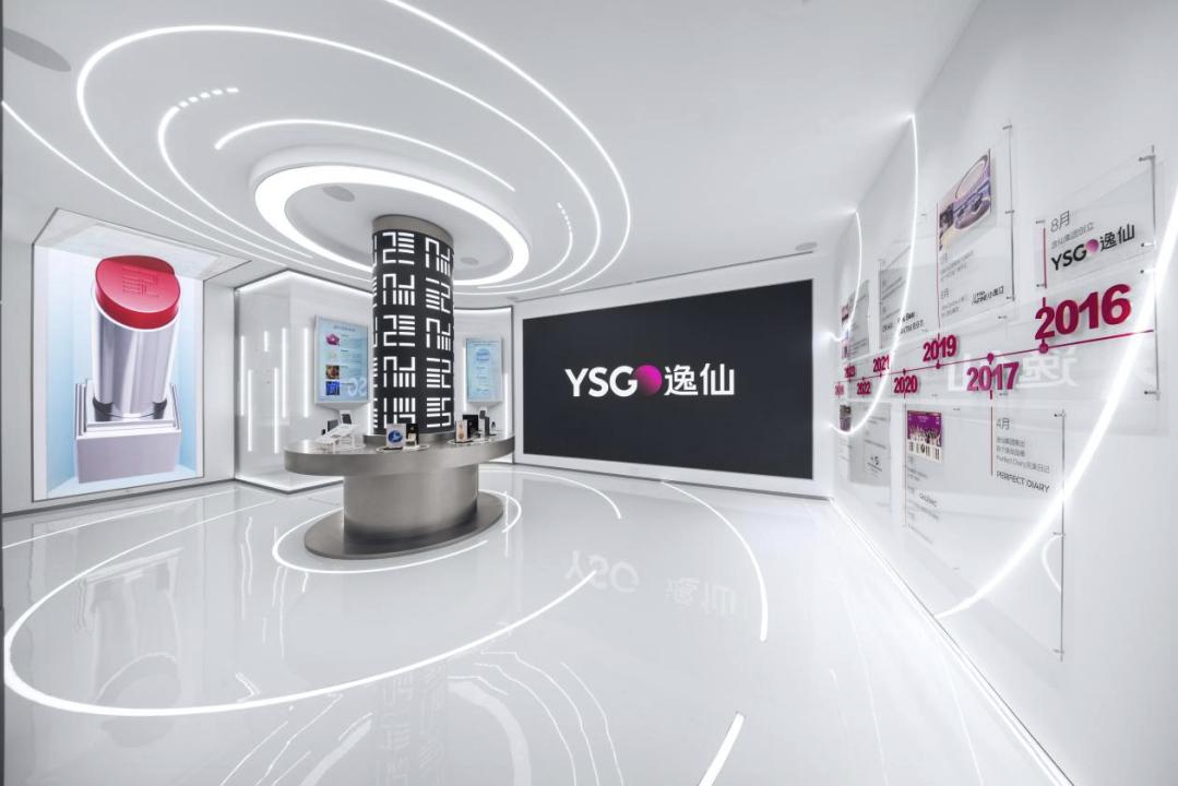 未来体验厅墙上标注的公司成长史,呈现了逸仙集团一路走来创造的众多奇迹,比如2019年旗下品牌完美日记成为首个登顶天猫双十一彩妆榜的国货品牌;2020年逸仙集团成为首个在纽交所上市的中国美妆本土企业。