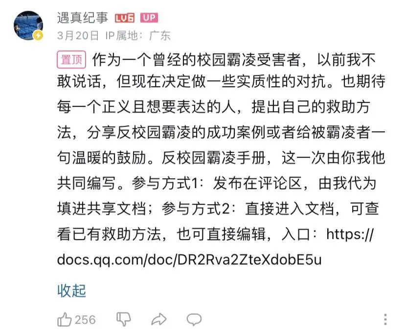 在线文档中,既有针对校园霸凌的救助方法、成功案例和有效建议,也有来自网友的暖心鼓励。